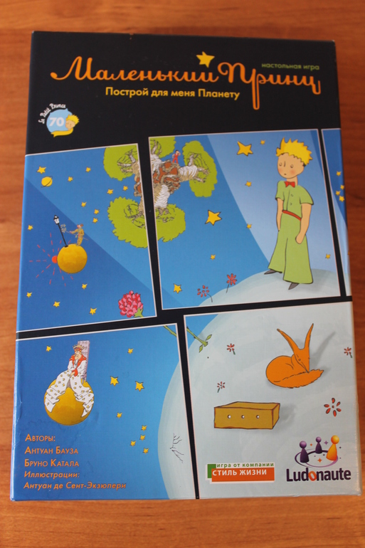 Начну с того, что до покупки я распечатала игру, но поиграв немного, поняла, что эта игра у нас обязательно должна быть только от производителя. Это такое приятное чувство стоить из качественных твердых тайлов свою собственную планету, а потом подсчитывать количество очков, не напрягаясь, используя поле для подсчета очков! Полное расслабление! А для того, кто является поклонником Антуана де Сент-Экзюпери - эта игра дань памяти, уважения и восхищения бессмертным произведением.
