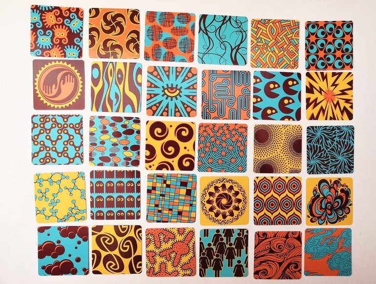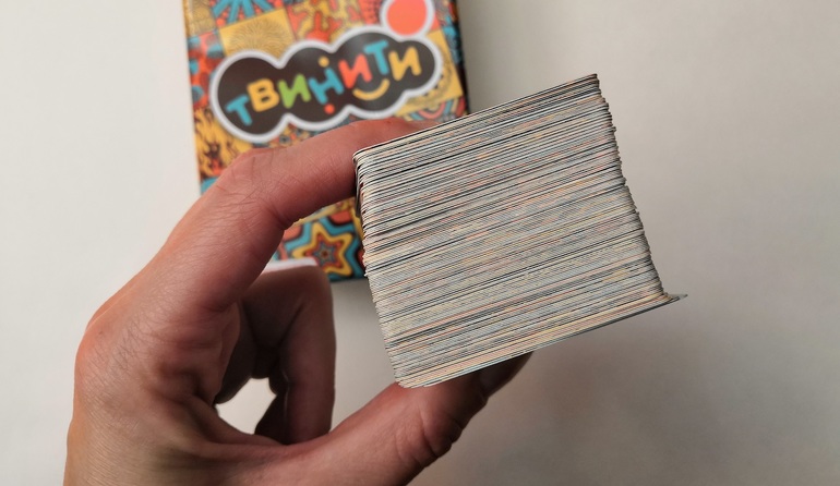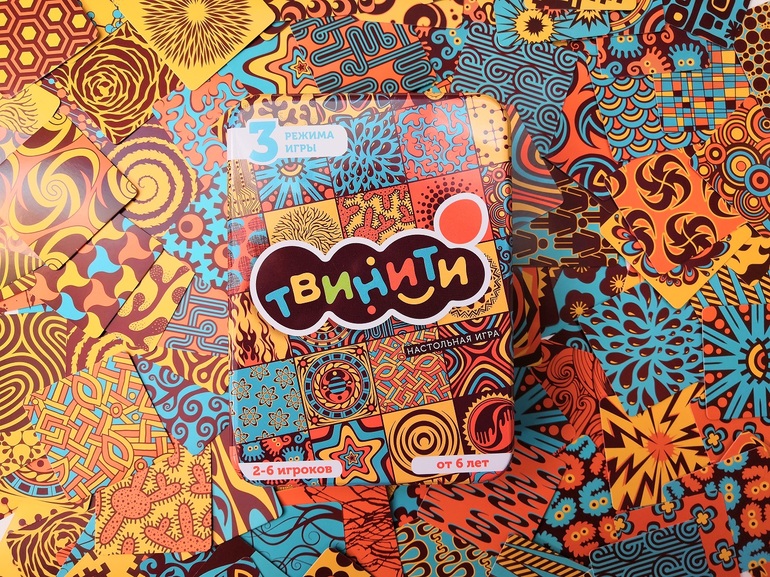 Я увидела игру "Твинити" на игротеке и сразу влюбилась в это буйство узоров и лаконичность цветов. И хотя на коробке указано, что игра для детей от 6 лет, взяла я ее четырехлетке с той задумкой, что будем играть частью карт. Открыв коробку дома, я поняла, что не представляю, как разделить колоду хотя бы пополам. Это же надо просмотреть 270 сторон, а я ленивая, чтобы найти и отобрать пары. И стали мы сразу играть по правилам всей колодой. И что же я вижу? Играется и находится!