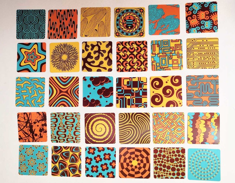 135 двусторонних карт с узорами. Размер карт - 5х5 см.