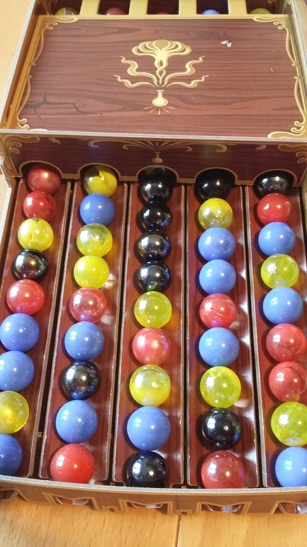 Остальные колбы разделяются на 5 стопок и помещаются перед игроками.
