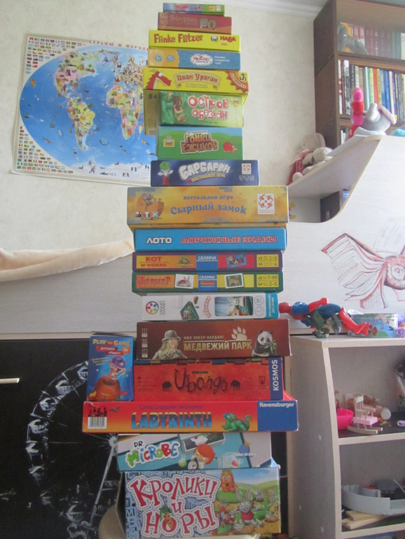 Огого! Хотя когда 2 игрока, наверное, больше играется. У нас получается только в выходные поиграть в несколько игр, а в течение недели только в 1-2. На днях вообще анекдот был. Дочь из сада забрать проблематично - "можно я еще 5 минуточек поиграю, а еще 5?" И так до конца маминого терпения. А тут прихожу за ней - она игрушки убрала и бегом собираться. Я в шоке - почему? Говорит - ну так в игры играть хочу! Ну, думаю, ура))) Кто угадает, какую игру она выбрала и играла почти весь вечер? Что-то из новинок или горячо любимых игр? Три ха ха. Попросила достать Дженгу и почти все время делала из плашек "цепную реакцию". Ну пару раз по правилам сыграли))))