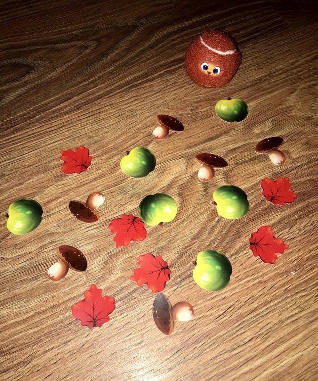 Определяем стартующего, вручаем Ёжемяч ииииии понеслась! Катим мяч по жетонам, и смотрим, сколько же добра принес нам в этот ход хапуга-ежик.