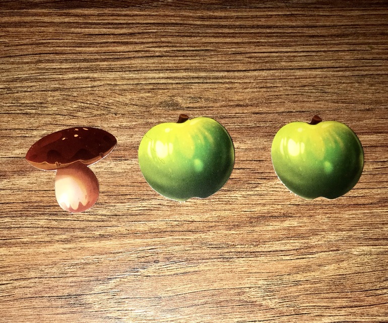 -18 жетонов-липучек в виде яблочек, кленовых листьев и грибов.