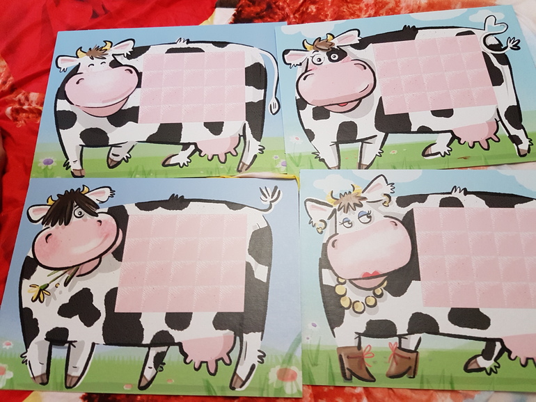 В огромной коробке (размер был для меня неожиданностью) 4 двухсторонних планшета с разными коровами.