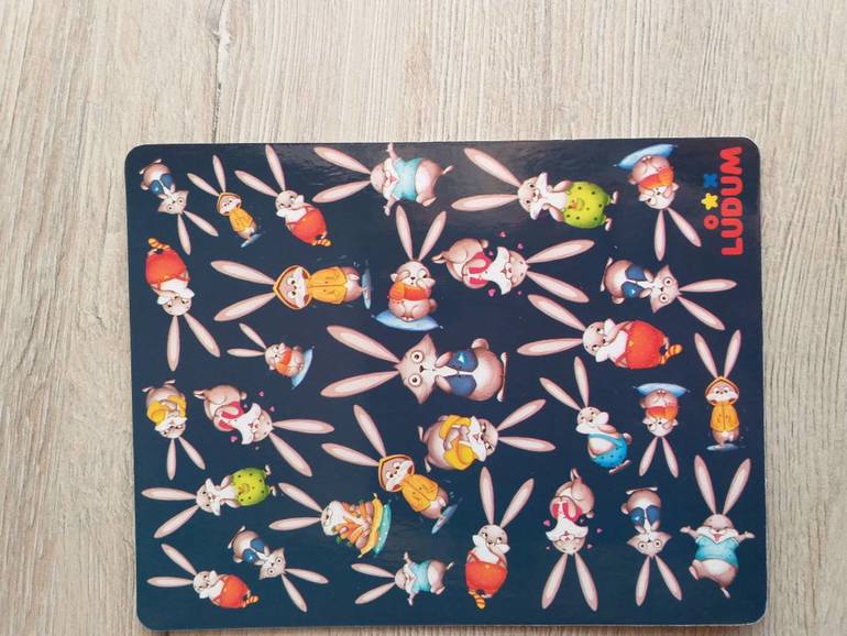 Карточки с одной части вставьте в ложемет., а с другой положите рядом. Верхняя карта переворачивается и ищется такой же заяц в ложемете. Достаются карточки по очереди. Как только нужный заяц найден игрок забирает себе пару. Открывается «новый» заяц.