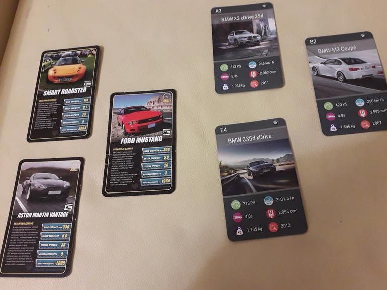 Принцип игры как в карточной игре"пьяница"- выкладывая карты одновременно с соперником, "победить" его карту и забрать обе себе. Проигрывает тот, у кого не осталось карт. На каждой карте несколько характеристик той машины, что изображена-объем двигателя, максимальная скорость и т.д. Выбираешь параметр, называешь его значение и надеешься, что у соперника карта слабее.