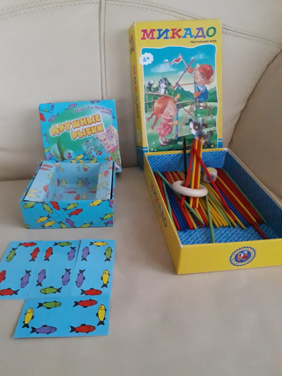 Еще парочка игр. Все знают, как играть в "Микадо" и "Дружных рыбок". В "Микадо" я не без успеха играла еще с 2хлеткой. До сих пор интересно. Игра вне возраста.