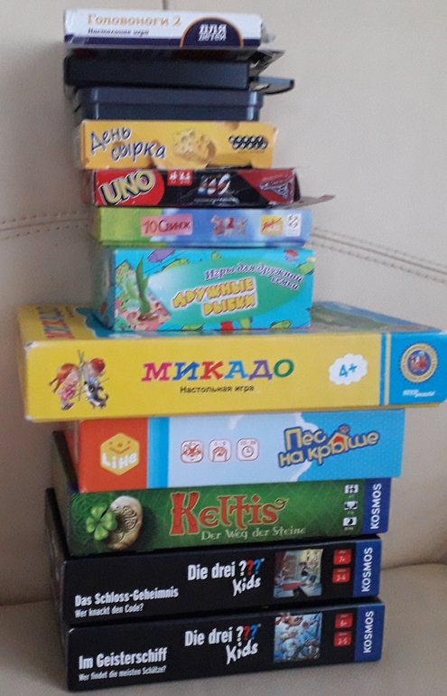 игры для малышей (дошкольников)Вообще-то сын любит эффектные настолки (а кто их не любит?), чтобы как разложиться, так на пол-комнаты. Но перекладывала я тут коробочки и решила показать наших "малышей".