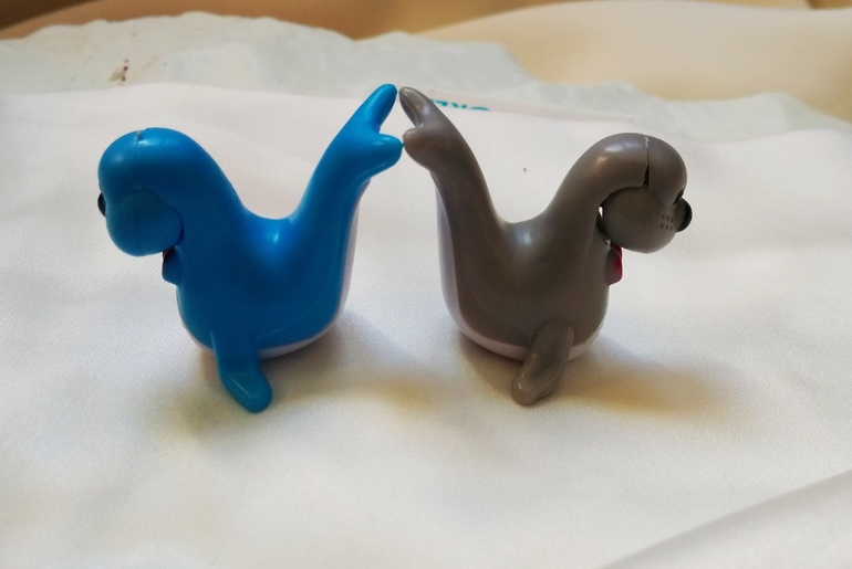 Тюлени миленькие, но т.к. составные, побоялась, что младшая проглотит и убрала далеко. .Благодаря флешмобу достала, удивилась тюленям, а дочки забрали их и играют с ними в ролевые игры. Пригодилась игра)))