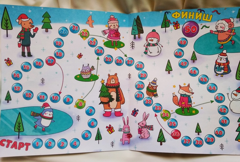 планирую добавить к играм заданий: в одну фанты новогодние с пантомимой привязать к определенным полям, в другую что-то с двигательной активностью, в третью- с чтением стихов.