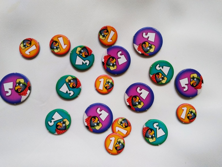 По сути- это полный абстракт, сыграть в игру можно чем угодно- крышками от бутылок, бумажными кружочками/квадратиками, обычной колодой карт