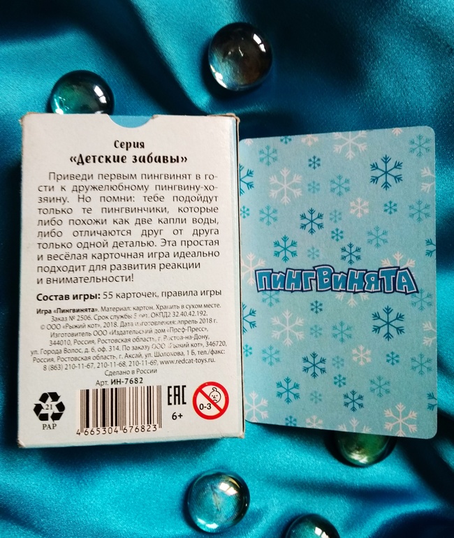Была куплена в поездку за очень дешево. Дети, увидев игру, сказали, что она про новый год и удивились зачем я взяла её с собой на море)))))))))Игра простая, аналог игр, где надо выбирать или точно такие же изображения,или отличающиеся одной деталью. Цель игры - первым привести пингвинят в гости к пингвину-хозяину.