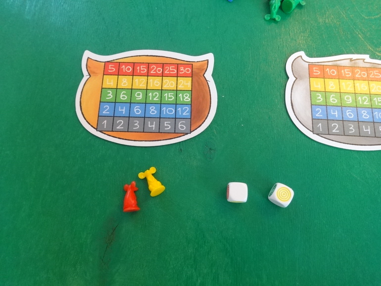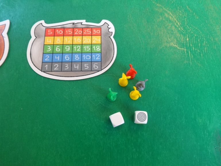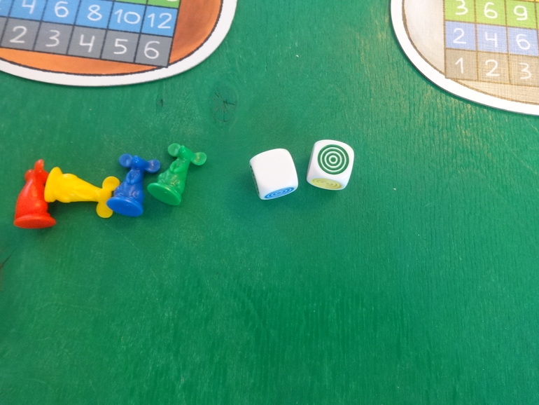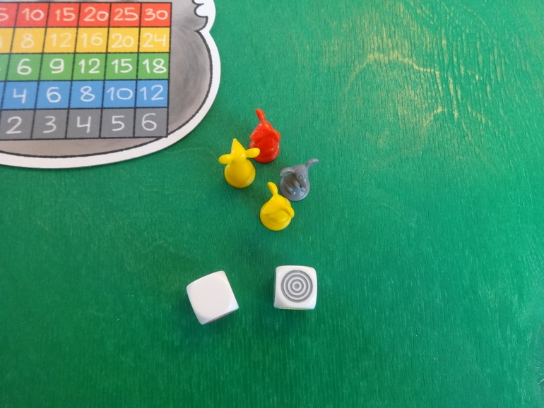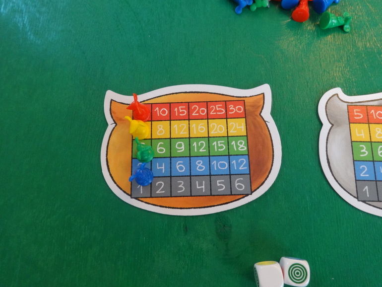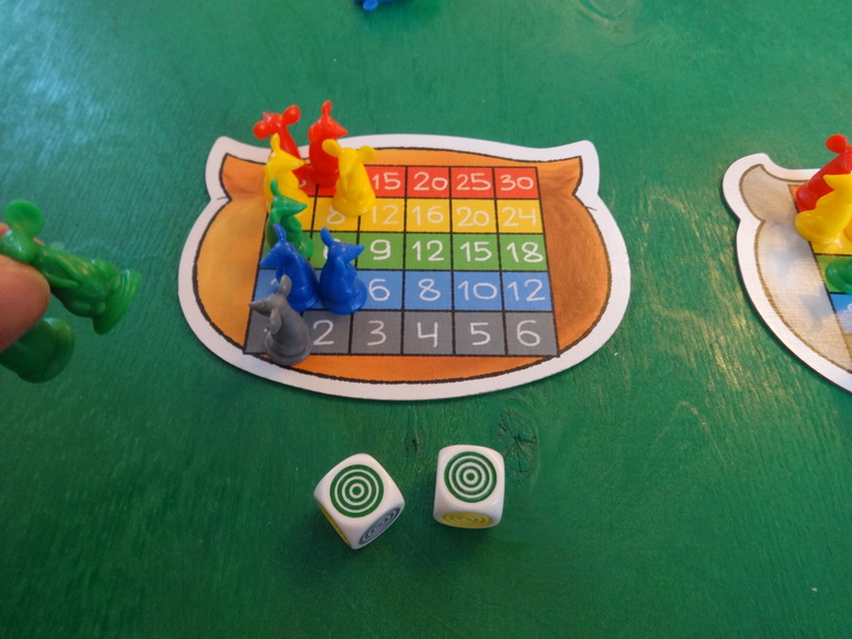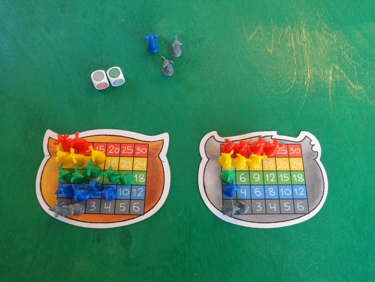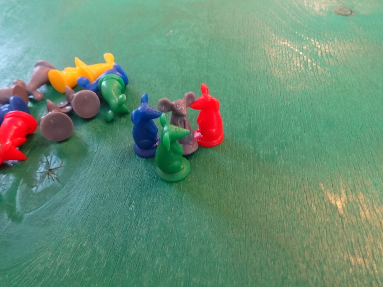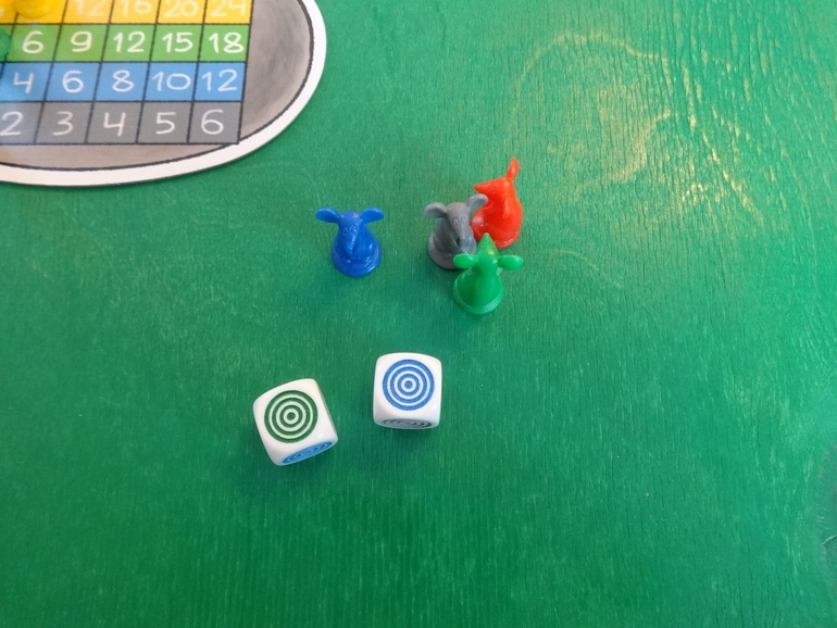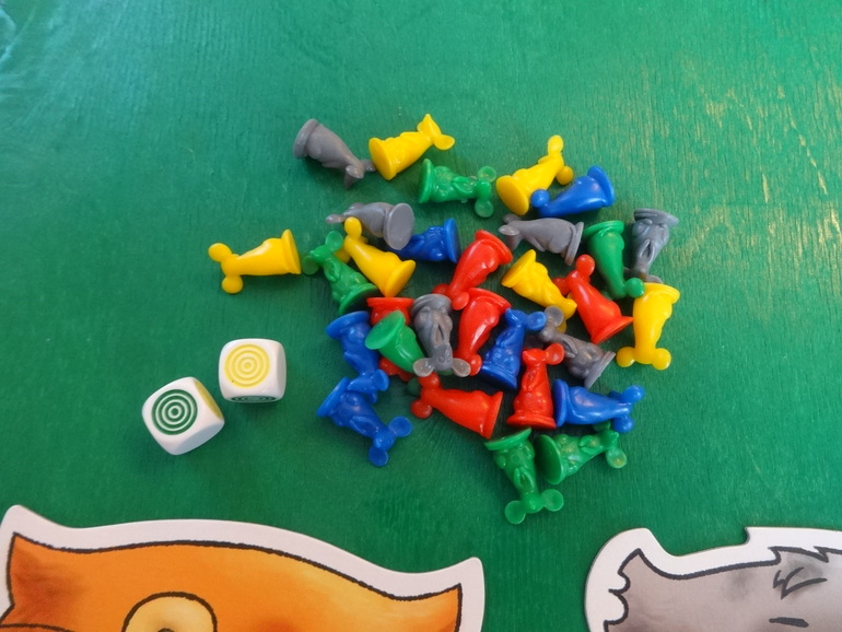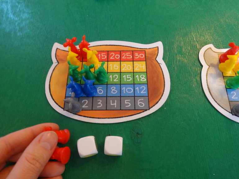 Янка кидает кубики, у нее выпадают желтый и белый цвета. Белый цвет может стать любым цветом по желанию игрока. Она решает, что этот цвет красный- мудрое решение, и кладет перед своим планшетом двух мышек: желтую и красную. Кидать кубики и набирать себе мышек можно сколько угодно раз за ход. Ход закончится, если игрок решит разместить всех пойманных мышек на планшете, или если при очередном броске кубиков выпадут цвета тех мышей, которые у игрока уже есть. В таком случае все мыши разбегаются- возвращаются обратно в банк:
