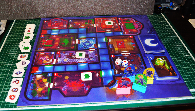 Механика несколько сложновата. Надеюсь, у племянника получится ее освоить за пару партий. Пробовала пока сыграть в нее только сама с собой. Вроде увлекательная. Нужно собрать в комнатах замка все спрятанные там сокровища и не позволить призракам размножиться в комнатах, иначе игра будет проиграна.