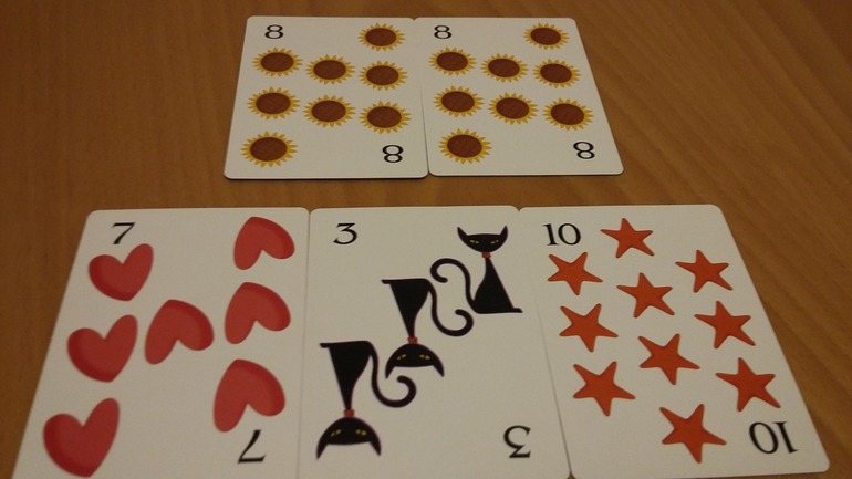 В руке у каждого игрока всегда должно быть 5 карт, поэтому их необходимо не забывать добирать. Также вы можете поменять числовые карты, на любые карты из колоды, но особенным образом. Всегда можно поменять одну числовую карту на одну карту из колоды. Если у вас есть две числовые карты одинакового значения их можно поменять на две из колоды. А если вы увидите что из числовых карт можно составить арифметический пример. Все карты из примера можно будет поменять на столько же из колоды. Например 7+3=10.