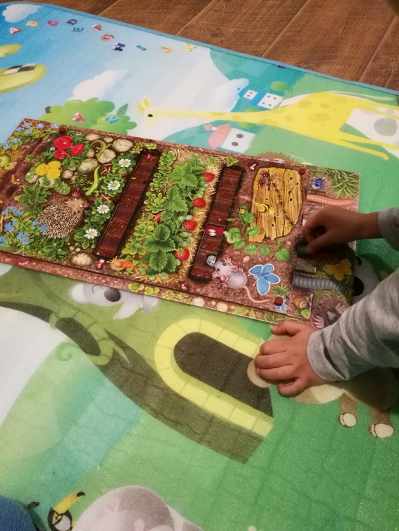 Молодец малыш! Мой в настольных играх больше всего любит кубики - стоит только открыть коробку, забирает кубики и убегает, чтобы не отобрали ))). Вот и вся игра. Возраст примерно тот же.