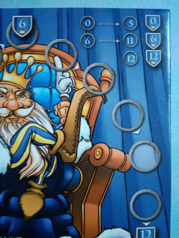 5 поле- поле Короля, где обучающиеся показывают свою преданность его величеству. Тут очки даются не лидерам, а любому дошедшему до середины (6 очков) или до конца поля (12 очков). Подсчет после 3 и 6 раундов. После 3 раунда все фишки перемещаются на старт.