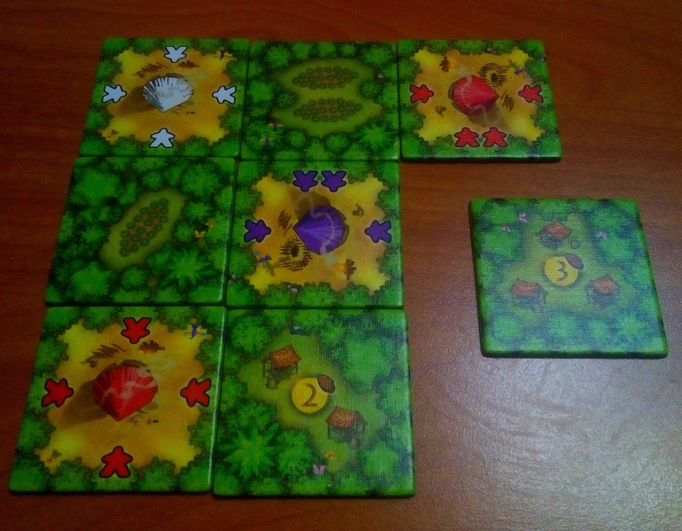 2. Выбирает один (или более) тайл из открытых джунглей (открыто всегда 2 тайла джунглей) и заполняет область джунглей (пустой угол, образованный тайлами рабочих).