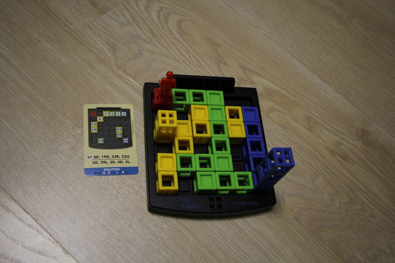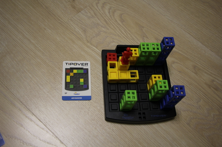 Своими словами. Расставляешь башни как на задании, ставишь гимнаста и нужно опрокидывая башни по ним перебраться до красного кубика. Правила как ходит гимнаст.