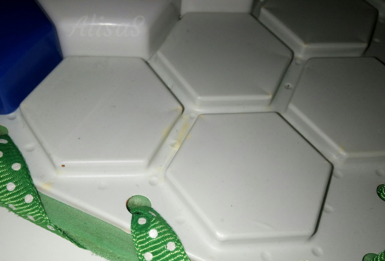 Если у первой мозаики поле для узоров крепкое и "основательное", то поле второй мозаики оказалось уж очень тонким и ненадежным, в некоторых местах под воздействием веса и маленьких ручонок примялось и потрескалось. Пришлось его немного "уплотнить" изолоном.