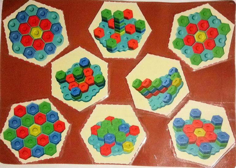 На коробке были приведены вот такие узоры и башенки, которые можно предложить собрать малышу:
