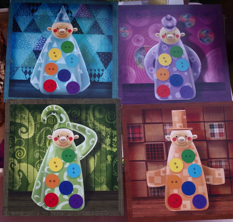 - Каждый игрок берет себе фишку и соответствующую ей карточку для пуговиц.