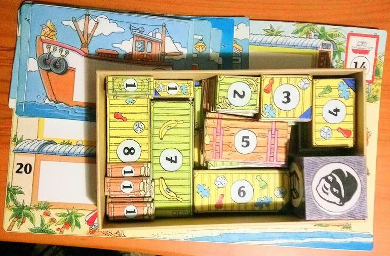 Карточки не ламинировала, клеила на плотный картон. А вот грузы наклеила картон мм 3 толщиной, чтоб были более надежными. Кубик пластмассовый, обклеила картинками, внутрь по просьбе трудящихся игроков поместили гремелку. Так играть веселее :)