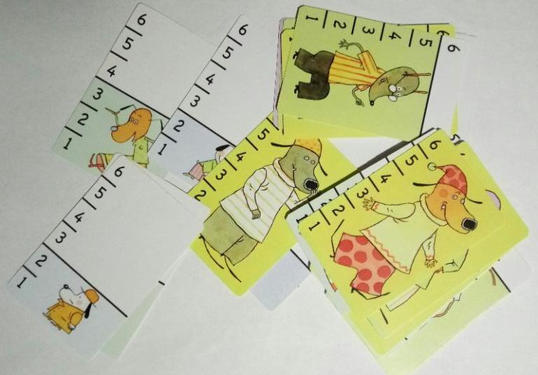 Для игры используется колода из 70 круглых карточек с изображением домашних животных, а также 10 круглых жетона (5 жетонов с цифрами ( от 1 до 5) и 5 жетонов с животными).