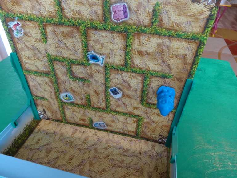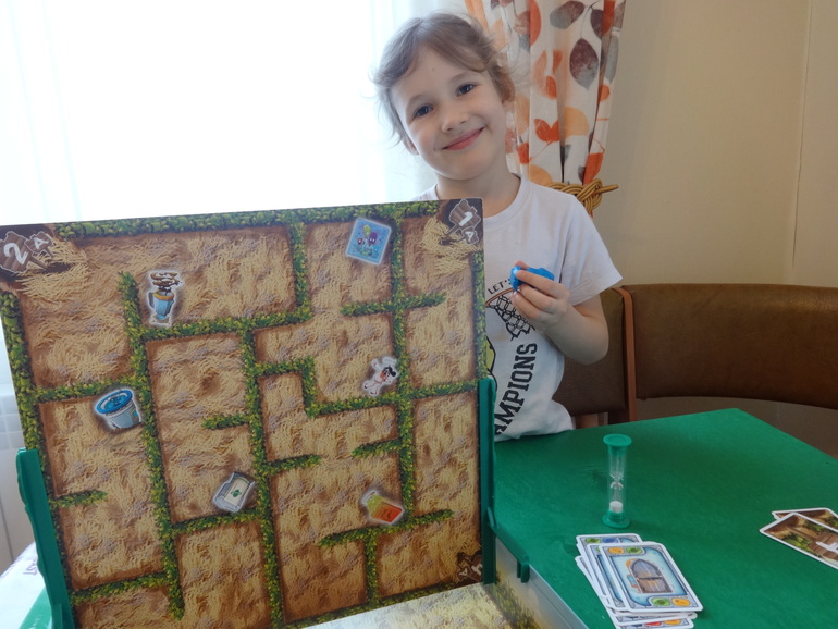 Сложность увеличивается за счет более узких и заковыристых лабиринтов. С дочкой играем на первых трех полях, на четвертом даже мы с мужем не смогли за отведенное время собрать столько предметов, чтобы улететь с Земли.