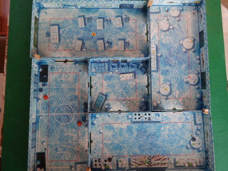 Дежурный в начале каждого раунда размещается на кухне, игроки в учебной комнате: