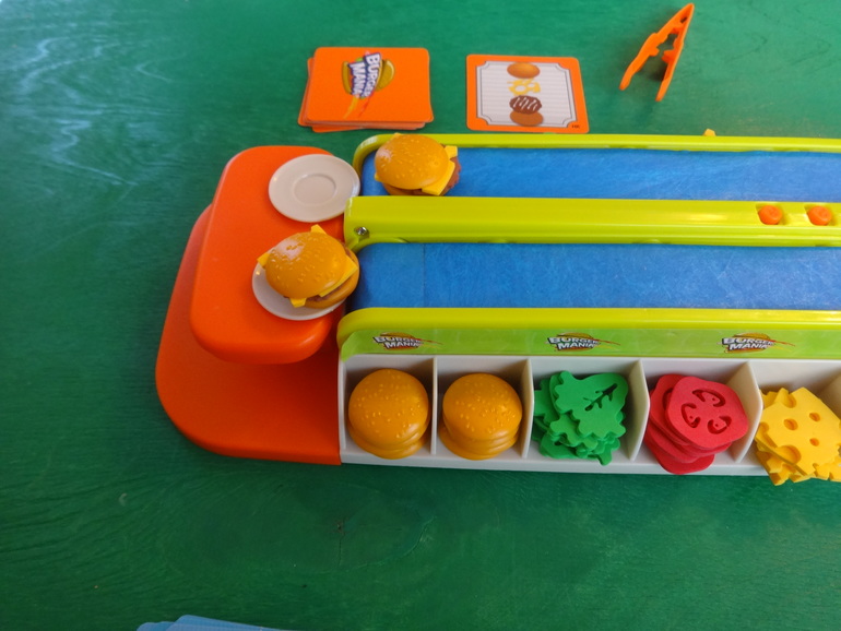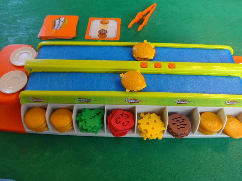 И начинают собирать бургеры в правильном порядке, не забывая подставлять тарелочки. Причём делают это пинцетом: