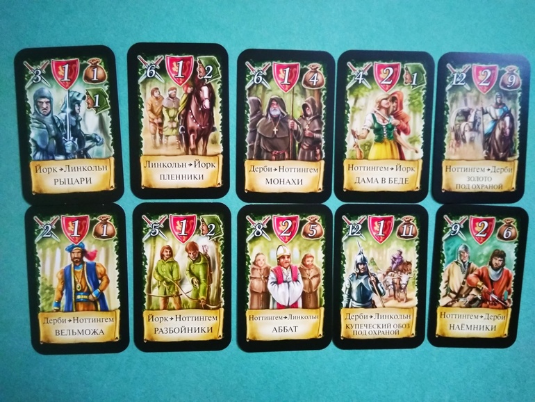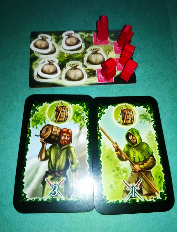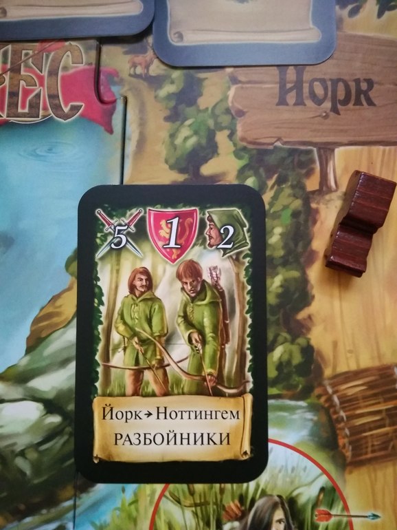 2. Нападение. Игроки по очереди (правило очередности весьма интересно) вскрывают карты путников. Как только путник проезжает мимо засады, разбойники обязаны напасть. Если их сила больше или равна силе путников, то путник считается ограблен, разбойники получают награду (очки славы, мешки золота, а иногда и дополнительного разбойника) и возвращаются в лагерь. Если силы разбойников меньше, они остаются в засаде, ожидая более легкую добычу, а карета с путником движется дальше по своему маршруту.