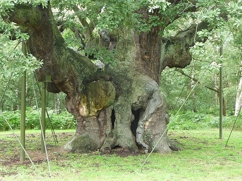По разным данным ему сейчас уже от 800 до 1000 лет. Иногда его еще называют Дуб-майор из-за того, что в 1790 году майор Рук Хейман упомянул это дерево в своей книге о дубах Шервудского леса. Несколько лет назад одна из местных компаний начала делать срезы с этого дерева с целью получения саженцев. Будущие деревья готовы отправлять во все крупные города мира. Кстати, туристы могут сделать себе весьма оригинальный подарок: приобрести деревце березы, выращенное в Шервудском лесу. Можно купить и желудь, упавший с дуба-долгожителя, а потом посадить его у себя в саду.