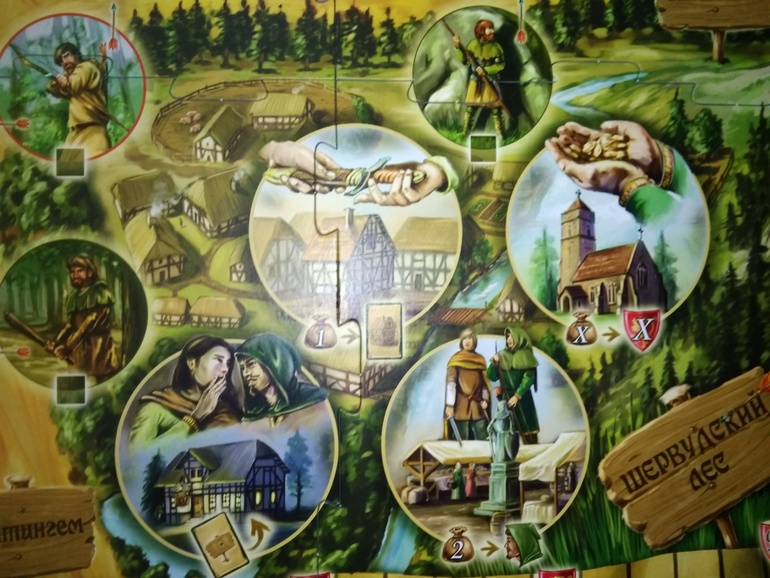 1. Подготовка. Каждый игрок, в порядке очереди, может отправлять своих разбойников на разные задания: купить снаряжение,