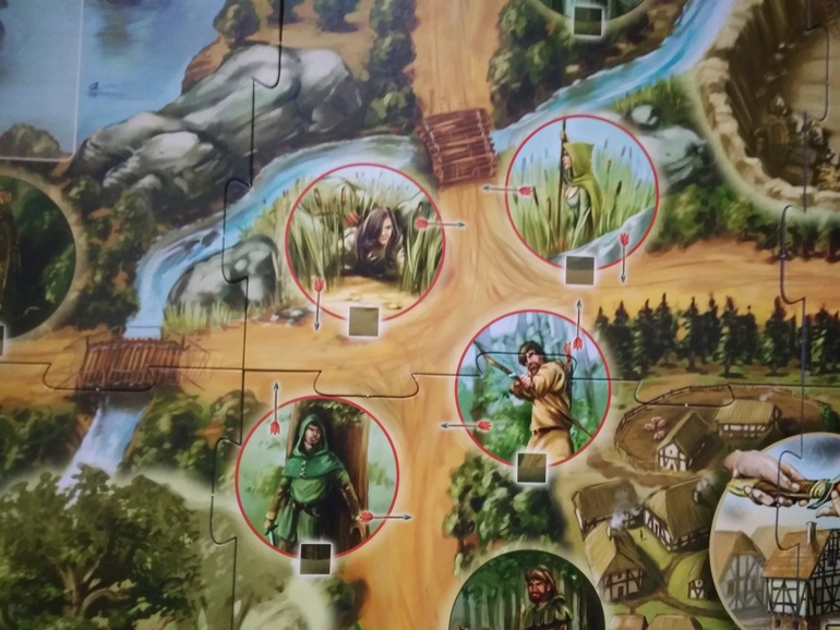 Игровое поле- лесной перекресток четырех дорог, вдоль них расположены места для засад, в которых нужно будет отправлять своих разбойников.