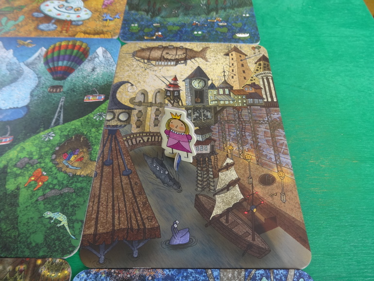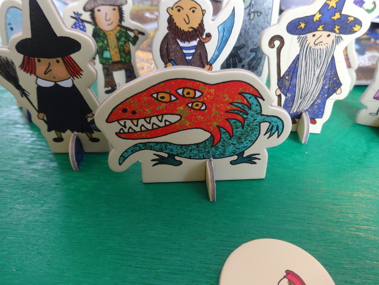 Всё очень условно, во время рассказа наши герои могут самопроизвольно перемещаться в другие локации волшебными способами или пешком, если это органично вплетается в сказку. Также герой может встречать других героев, которые просто достаются из коробки, или даже меняться сам в процессе сказки ( например, прекрасная принцесса превратилась в трёхглазое чудище, потому что была очень злая, и чтобы ей снова стать прекрасной принцессой, надо преодолеть разные трудности). Короче, к правилам не привязываемся вообще.