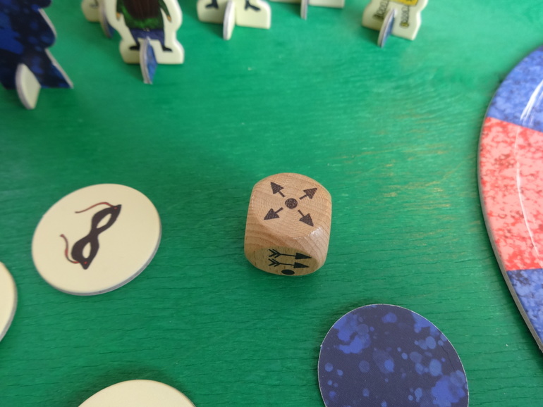 Мы собираем одно большое поле из всех локаций, берем барабан- вертушку, на котором указано какое событие должно произойти с героем в следующей главе сказки, выбираем персонаж, и кидаем кубик , который показывает , в какую сторону отправится герой в свой ход: