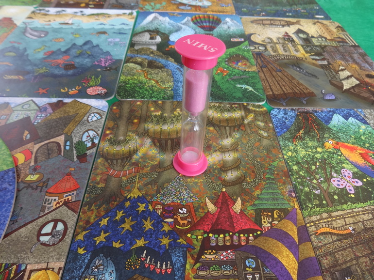 В игре есть правила, которые мы видоизменили. Разработчики советуют выкладывать столько локаций, сколько всего будет сделано ходов, но тогда получается очень ограниченный выбор для придумывания сказки. Мы же выкладываем все локации сразу, а потом договариваемся сколько ходов сделает каждый, обычно это три или четыре, т.е. по 15- 20 минут на сказку каждого игрока: