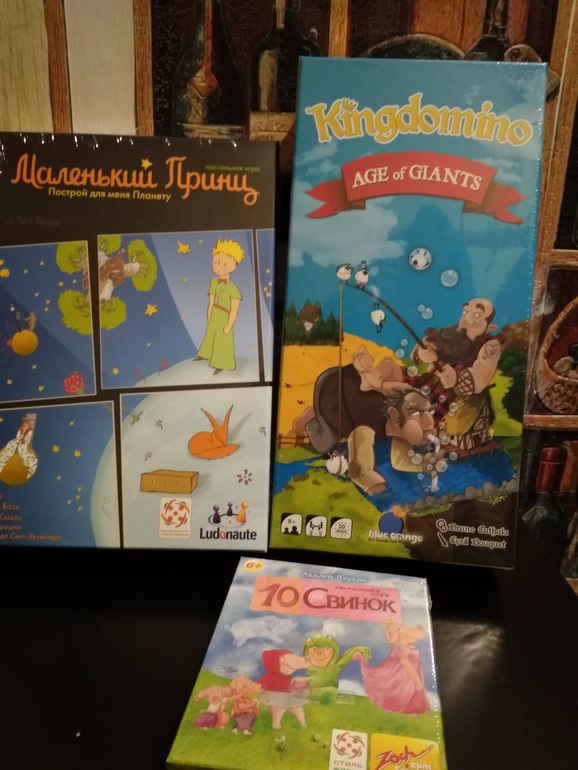 Ну классно! Я бы тоже не отказалась от Маленького принца, но книгу дочка еще, как я считаю, не поймет. А когда она её поймет, мне кажется, игра уже не будет интересной. Разве что взять игру без привязки к книге. А вообще у неё намного больше игр, чем у нас, а играть она хочет реже, чем мы. Чаще просит почитать, включить аудиокниги или мультики. Тем более в заначке лежат Лотос и Помидорный Джо. хотелось бы почитать твой отзыв про Маленького принца и 10 свинок)