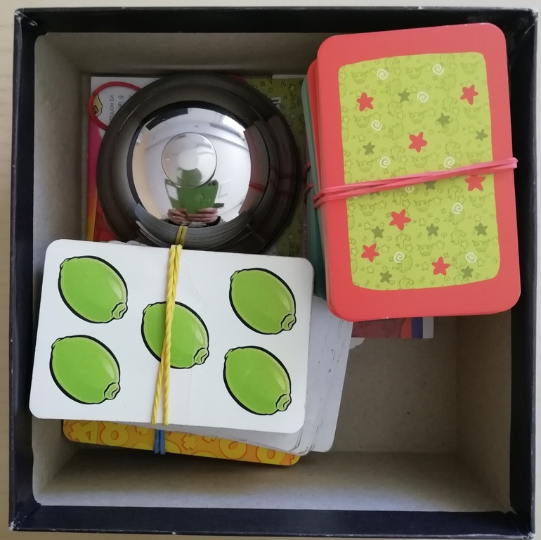 В коробке лежит и дополнение. Правильно лежит. Мы сначала играли без, как и рекомендуется: мило, но беззубо и долго (так как конец - на вершине пирамиды..).