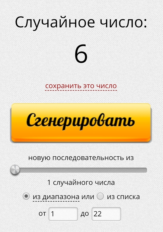 Генератор случайных чисел выбрал номер 6! Поздравляем Глорию!