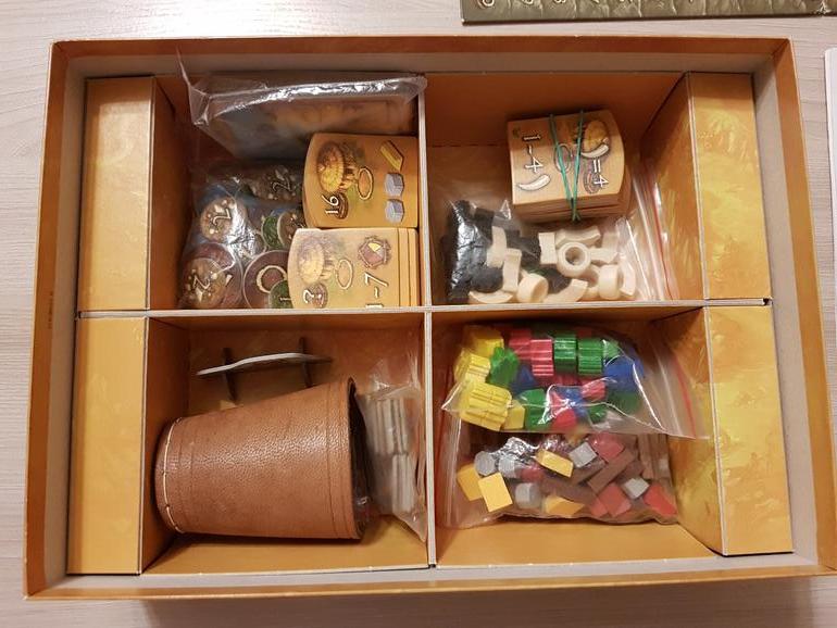 Что же в него входит? Во-первых, расширение для пятого игрока - планшет, новое племя и кубики-маркеры.