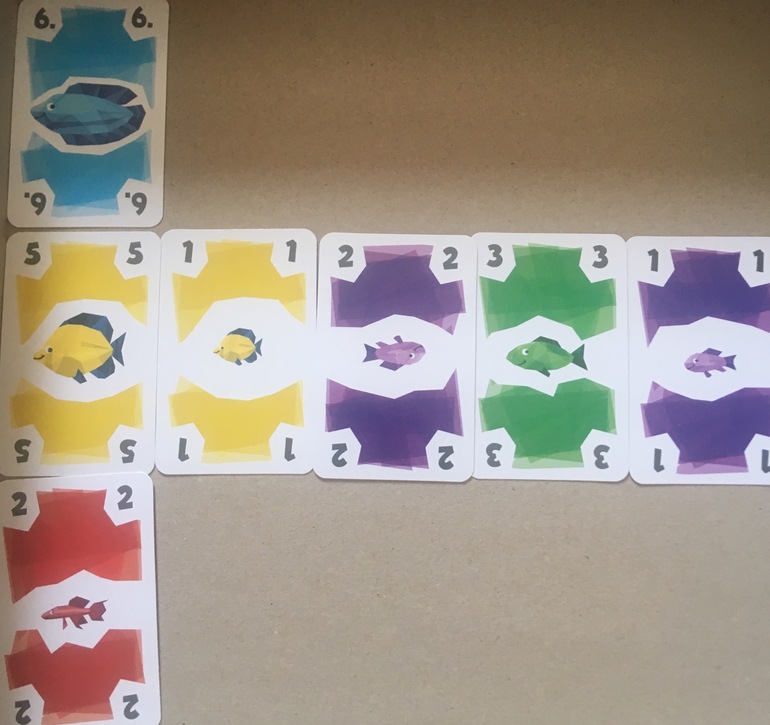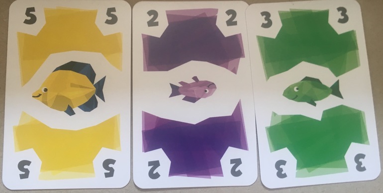 Ещё три карты из оставшейся колоды рыб выкладываются в центр стола, в этих рядах нам и предстоит рыбачить.