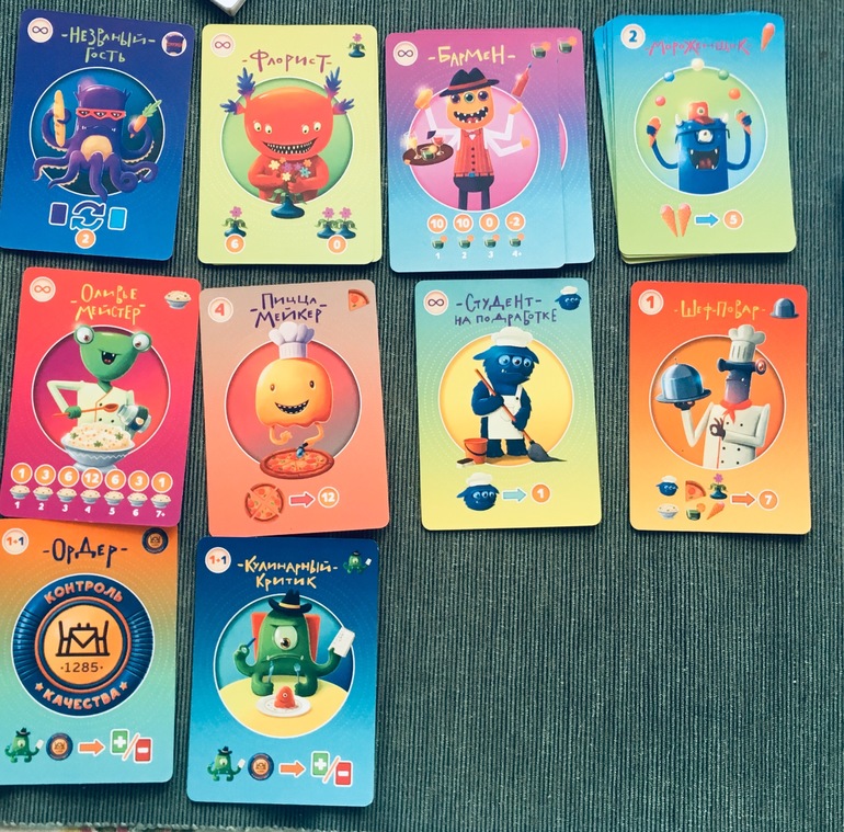 Игра похожа на Суши карты и их аналог Кафе для чудищ. У нас есть Кафе для чудищ, нам нравится, но Ресторация понравилась больше.