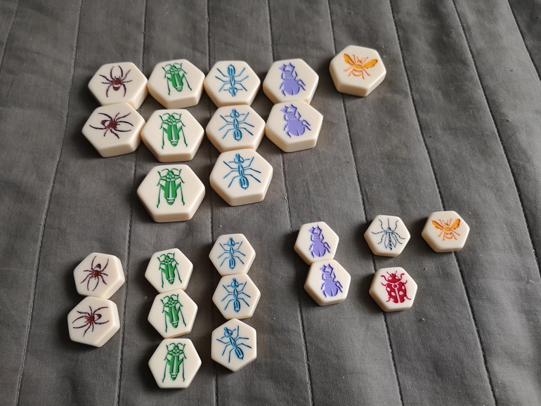 Фишки отличаются только размером. Качество такое же. Количество у дорожной версии отличаются. В комплекте к ней идут фишки божья коровка и москит по 1 шт. В стандарной версии их нет, но можно купить отдельно.