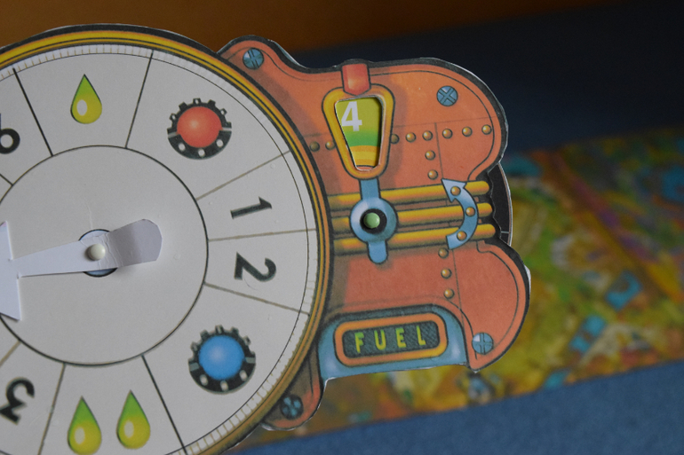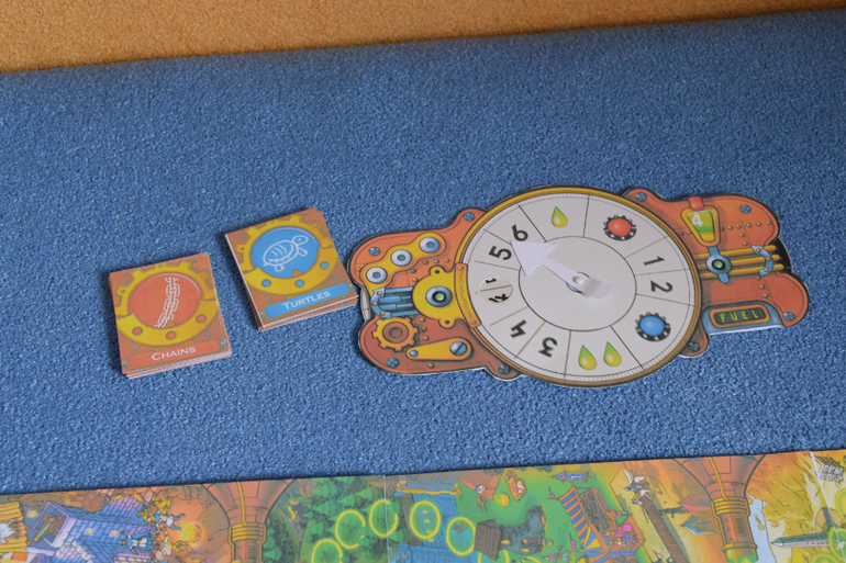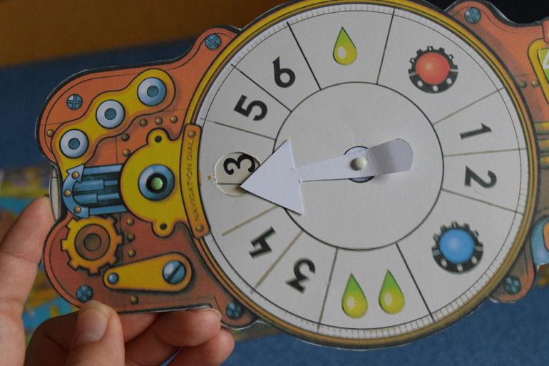 Для того, чтобы продвигаться по полю у нас есть такой механизм со стрелкой и двумя вращающимися дисками, а так же карты поиска синего и красного цветов: