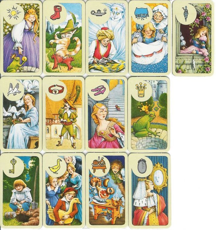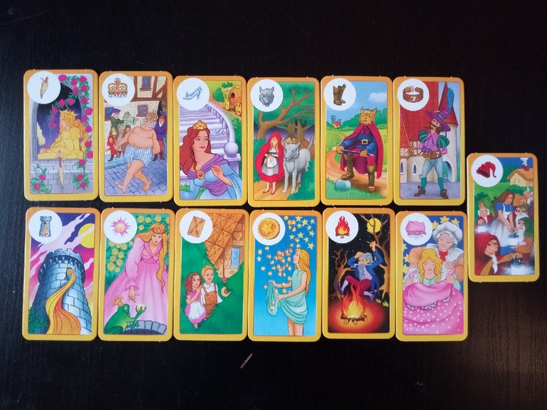 Вот собственно и всё, но если вы, как и я, любопытны, то можно ещё и уровень знания сказок подтянуть. К примеру, я в детстве читала лишь шесть сказок (вот они в верхнем ряду), и хотя знаю о существовании Белоснежки, Госпожи Метелицы, Пряничного домика и Златовласки, но оригинальные сказки с их участием никогда не читала. А про золотой шар, звёздный талер и танцующего гнома, даже не имела понятия)) Зато после приобретения игры всё знаю и могу детям рассказывать!)