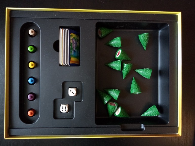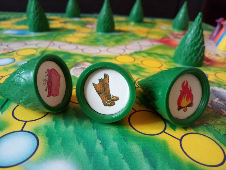 Согласитесь, если бы игроки просто бросали кубики и ходили, пытаясь встать на нужное (голубенькое) место и заглянуть под ёлочку... это было бы как-то скучно и вряд ли заслужило бы Spiel des Jahres, даже со скидкой на 1982, поэтому продолжаю дальше пересказывать правила.