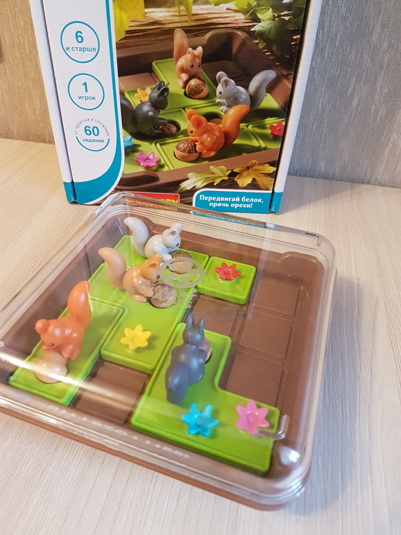 Я прорешала все задания, дочка в процессе (третий или четвертый уровень проходит), но главное - эти милые белочки нравятся сыну ))). Он просит достать коробку, сам расставляет белок, как ему нравится, раздает орехи и загоняет их в ямки, при необходимости переворачивая белок 😁. И так каждый день. Пора покупать ему головоломки.