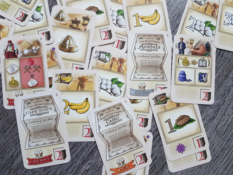 В Момбасе не обычный ареа-контроль. Игроки распространяют не свое собственное влияние по карте, а влияние компаний, получая деньги пропорционально пакету акций этих компаний. Может легко получиться, что акции у тебя одной компании, а дорого стоят акции совсем другой. Поэтому важно не забывать, что игра поощряет своевременное присоединение к развитым компаниям и развитие сразу в нескольких направлениях.
